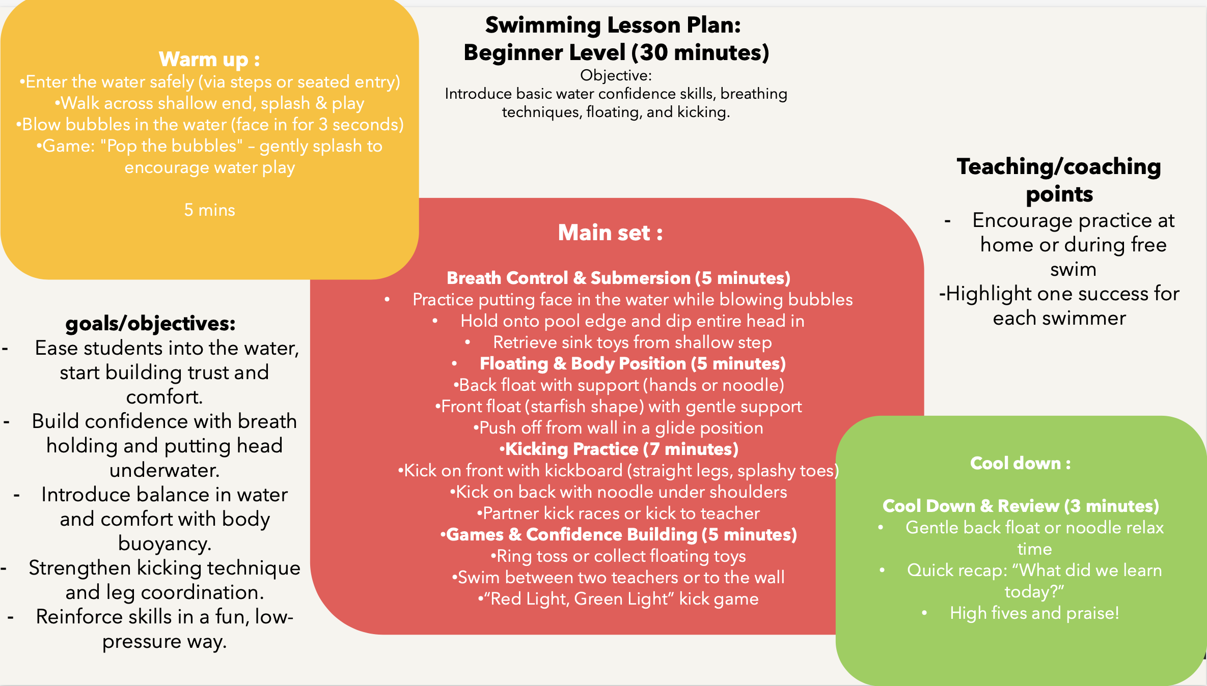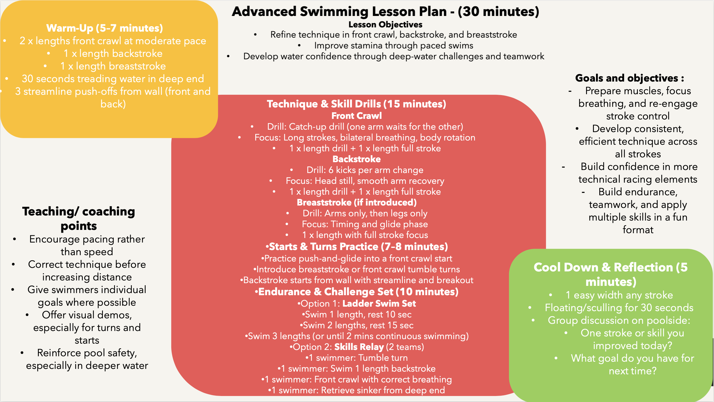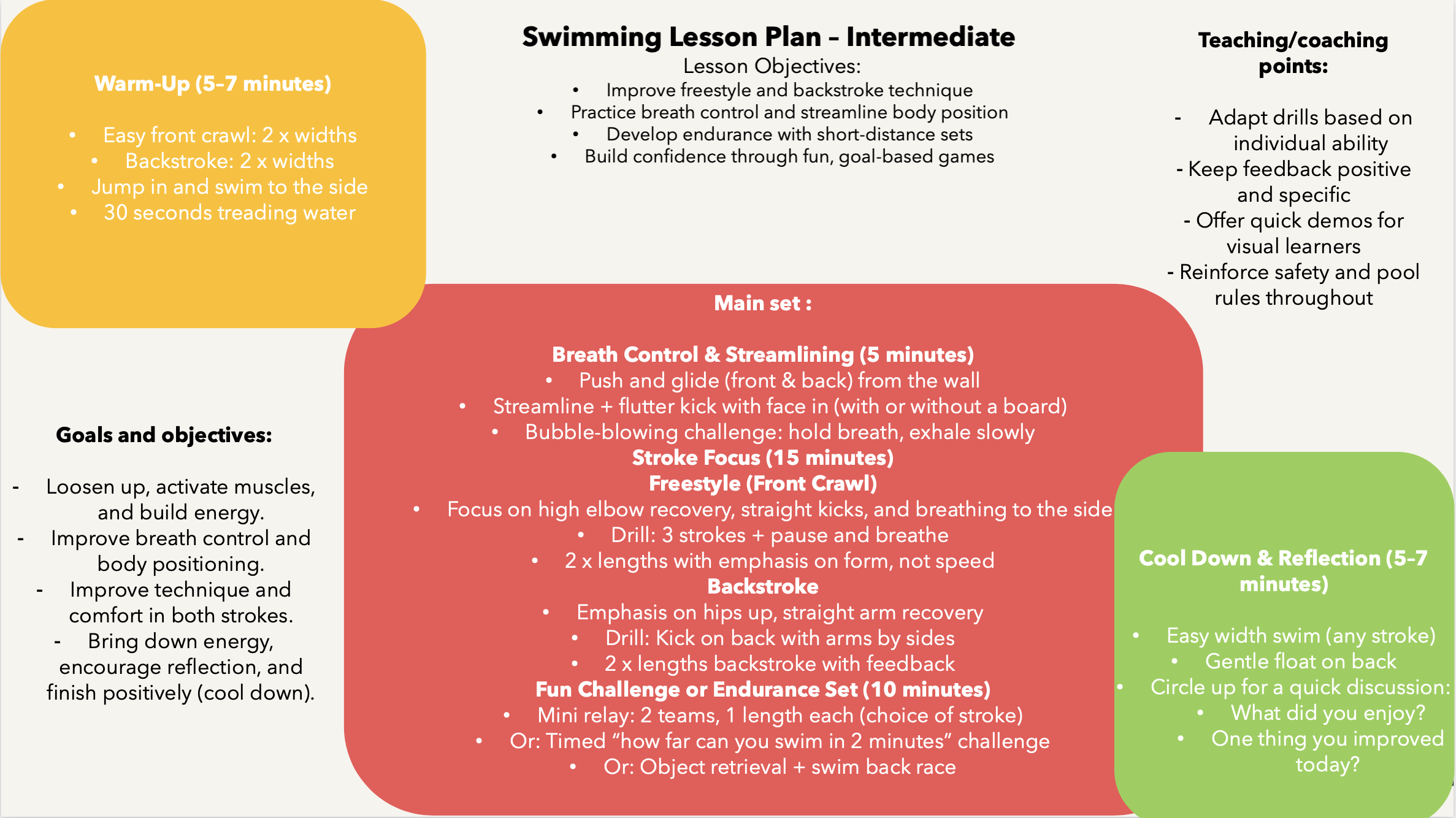 Intermediate Swimming Lesson Plan - (30 minutes)